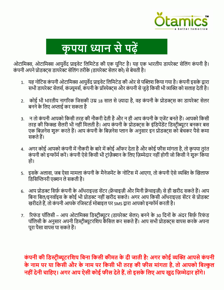 OTAMICS AYURVEDA PRIVATE LIMITED Has been founded for the Distributors. We Better understand each and every problems arising from the first day during the journey in direct selling industry. Our prime goal is to provide best services in allpossible ways to every distributor. i.e., Products, Payouts planning (Business & marketing)